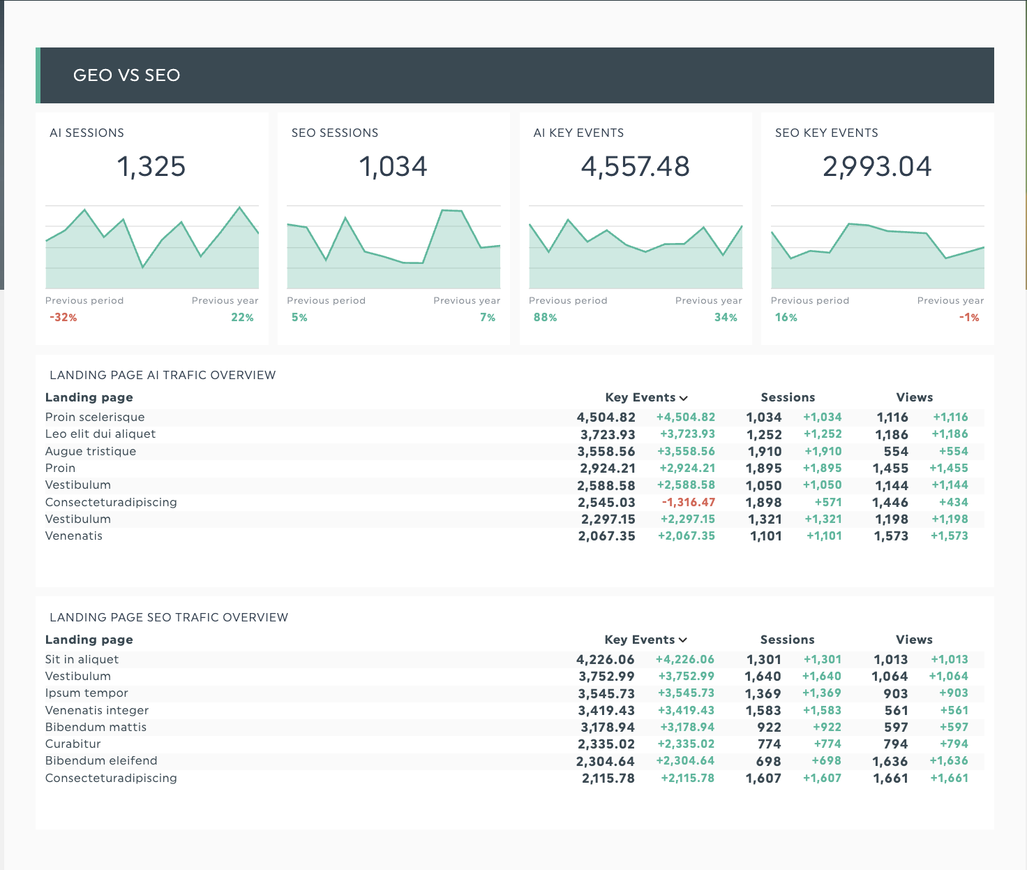 Alors que notre modèle de rapport sur l'IA suit le trafic provenant des outils d'IA, ce guide se concentre sur l'utilisation de l'IA comme avantage concurrentiel pour vous aider à analyser et à comprendre vos données marketing plus efficacement afin de rester à la pointe des tendances futures et d'adapter vos processus de reporting à l'avenir.