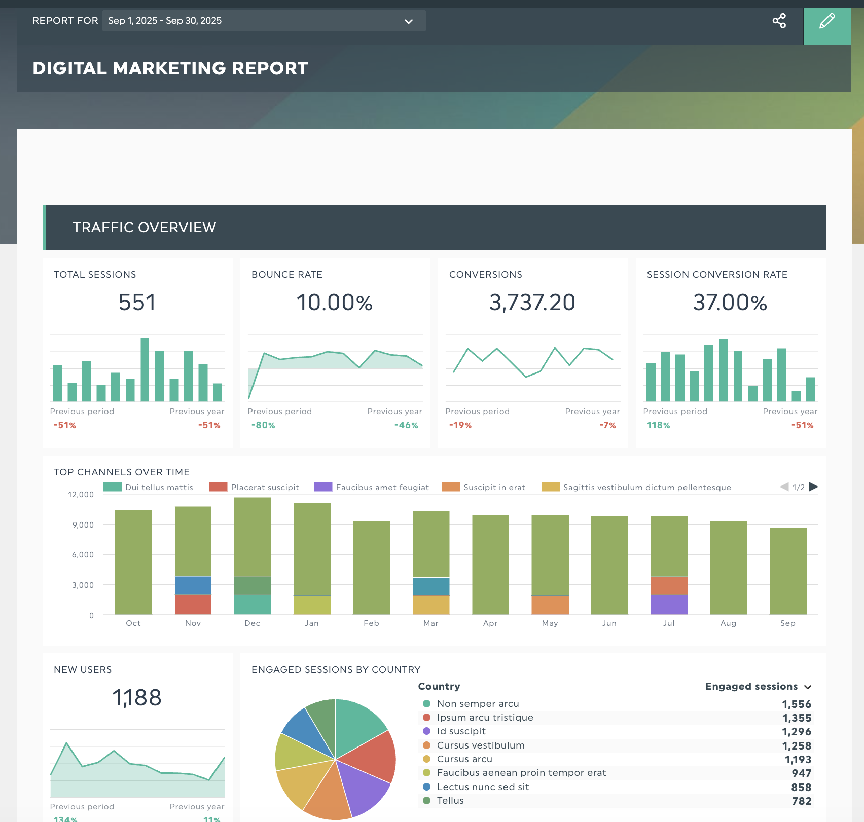 Rassemblez toutes vos données marketing dans un seul rapport automatisé.