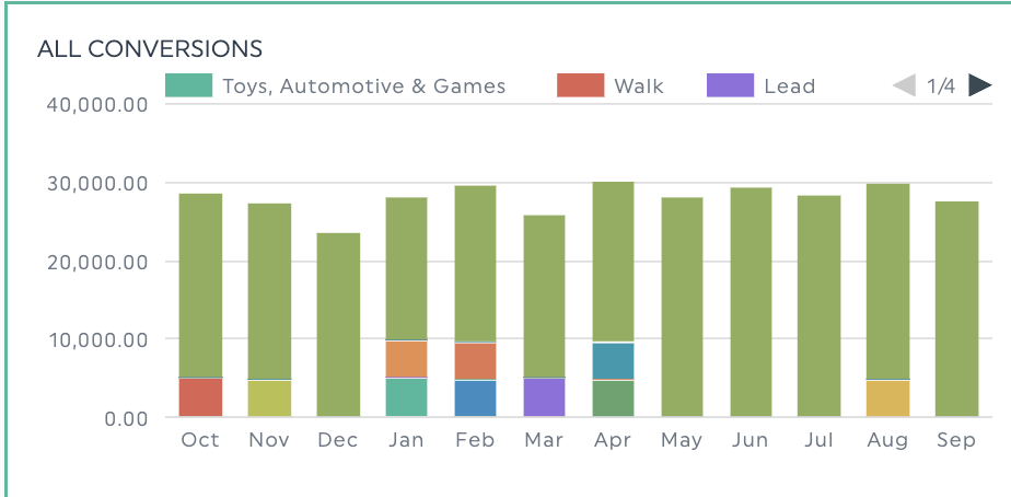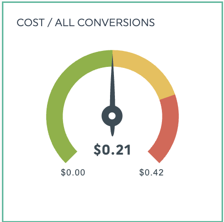 Pour les types de variables axées sur les objectifs qui nécessitent un suivi étroit, les widgets de jauge vous aident à suivre vos progrès. Ils permettent de montrer à quel point vous êtes proche d'atteindre des objectifs clés, qu'il s'agisse d'objectifs de coût par conversion ou de chiffre d'affaires. Ces widgets permettent également de fournir un contexte visuel codé par couleur - vous saurez immédiatement si vous êtes sur la bonne voie pour atteindre vos objectifs ou non.