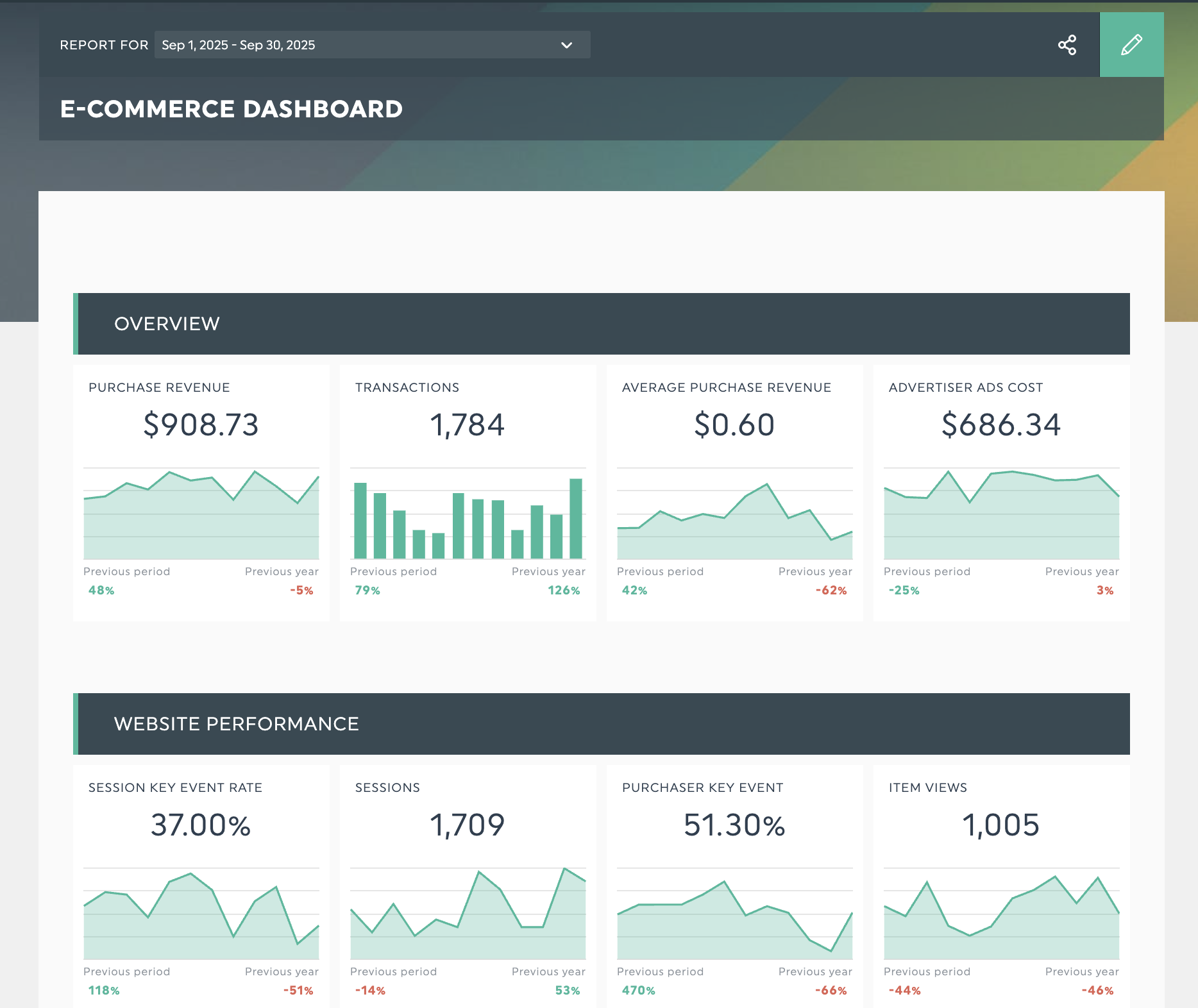 Obtenez ce tableau de bord e-commerce avec vos propres données !