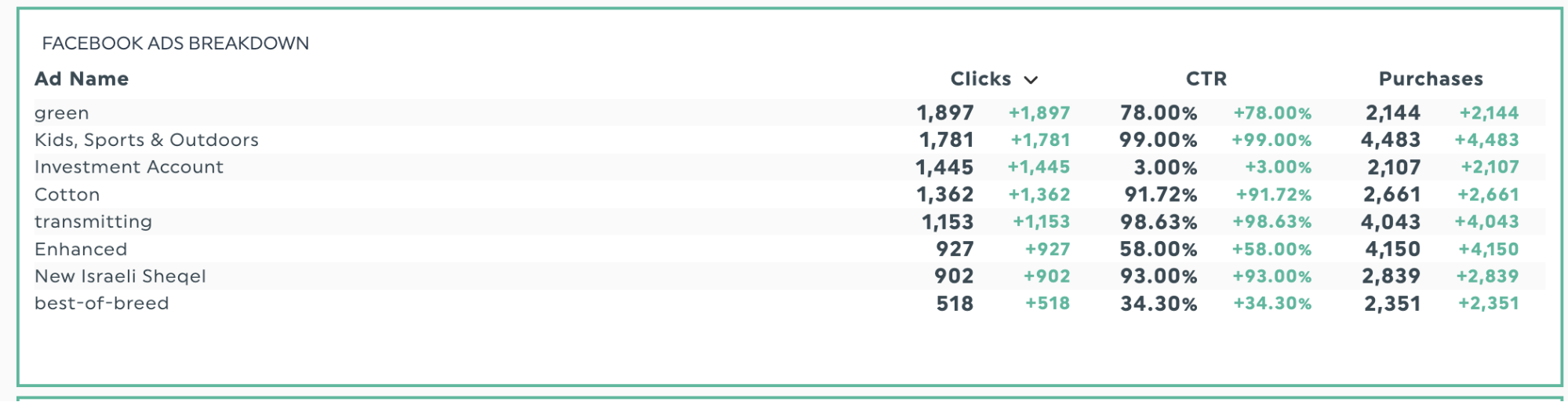 Mais il est difficile de donner un sens aux données provenant de différents canaux. Chaque plateforme dispose de son propre tableau de bord et de ses propres indicateurs, et peut nommer les mêmes éléments de manière différente. Les clics sur les liens Facebook et les clics Google Ads semblent similaires, mais ils suivent des actions différentes. Les clics sur les liens ne comptent que les visites sur votre site, tandis que les clics Google Ads couvrent tous les clics sur l'annonce.