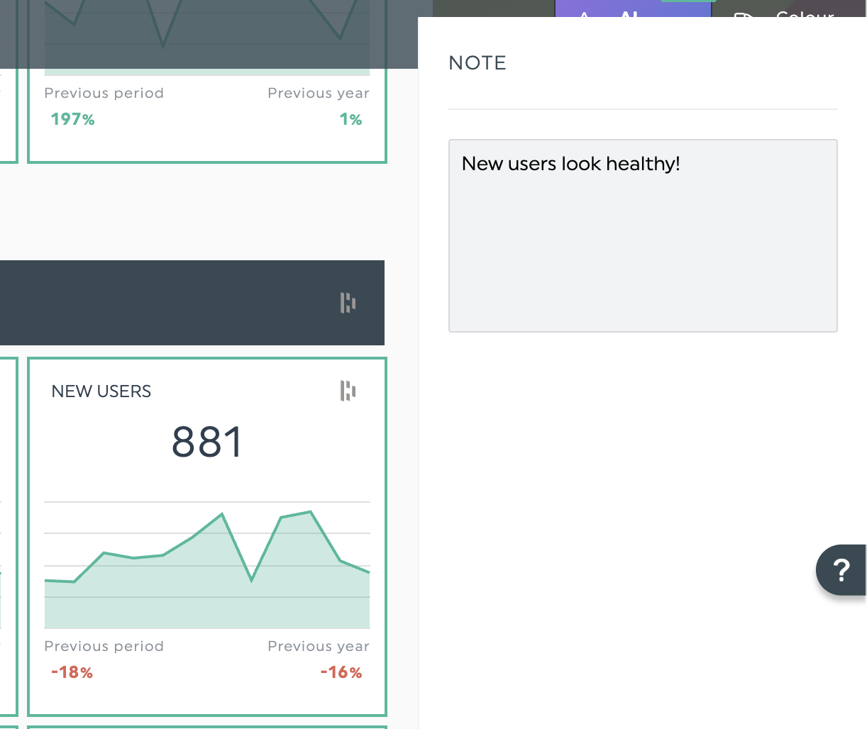 Lorsque vous envoyez des rapports par e-mail, ajoutez des notes explicatives à l'aide du widget Notes et commentaires de DashThis. Elles fournissent aux destinataires le contexte nécessaire pour comprendre vos chiffres.